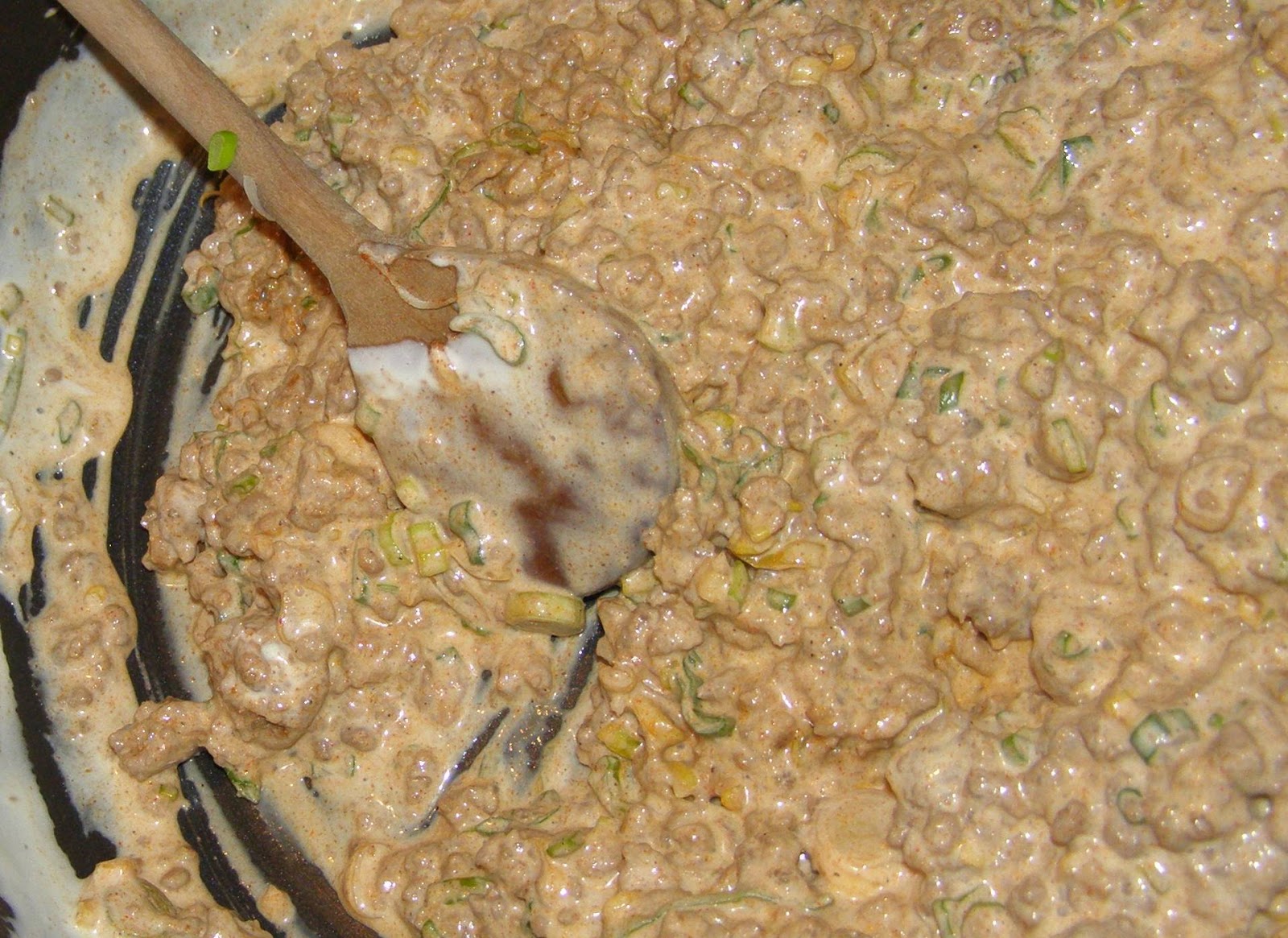 dem Quark, den Eiern und den Lauchzwiebeln gut vermengen.