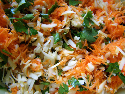 Währenddessen die Karotten sowie den Ingwer schälen und fein reiben. Ebenso