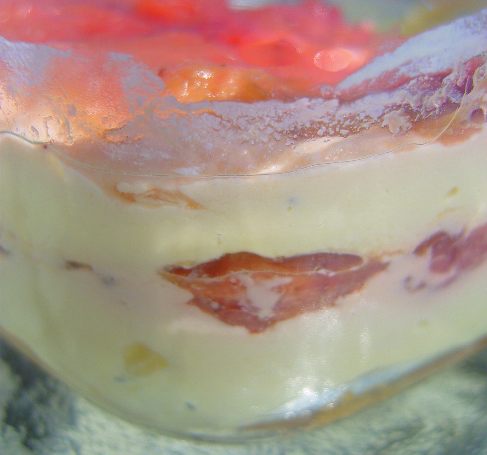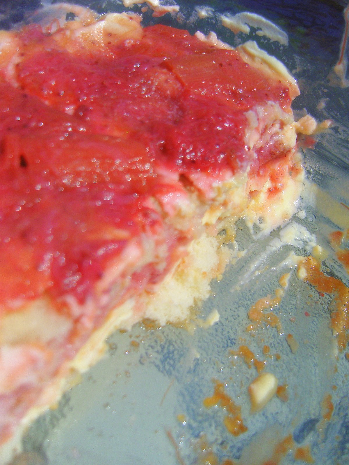 Da ich keinen Kaffee mag, bleibt mir klassisches Tiramisu verwehrt, damit ich aber nicht immer leer ausgehe, habe ich ein Rezept von Tim Mälzer etwas verändert und dabei ist dieses super leckere, cremige Dessert herausgekommen. Dadurch dass die Mascarpone mit Vanillepudding vermischt ist, ist sie nicht so schwer, allerdings auch nicht so fest. Daher sieht das ganze leider nicht sonderlich schön aus auf dem Teller, allerdings tut das dem Geschmack überhaupt keinen Abbruch. Das Mischungsverhältnis zwischen Erdbeeren und Rhababer kann man übrigens variieren, je nachdem was man von beidem lieber mag ;-).