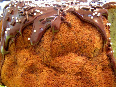 dass die Kuvertüre seitlich am Kuchen herunterläuft. Mit Schokostreusel und