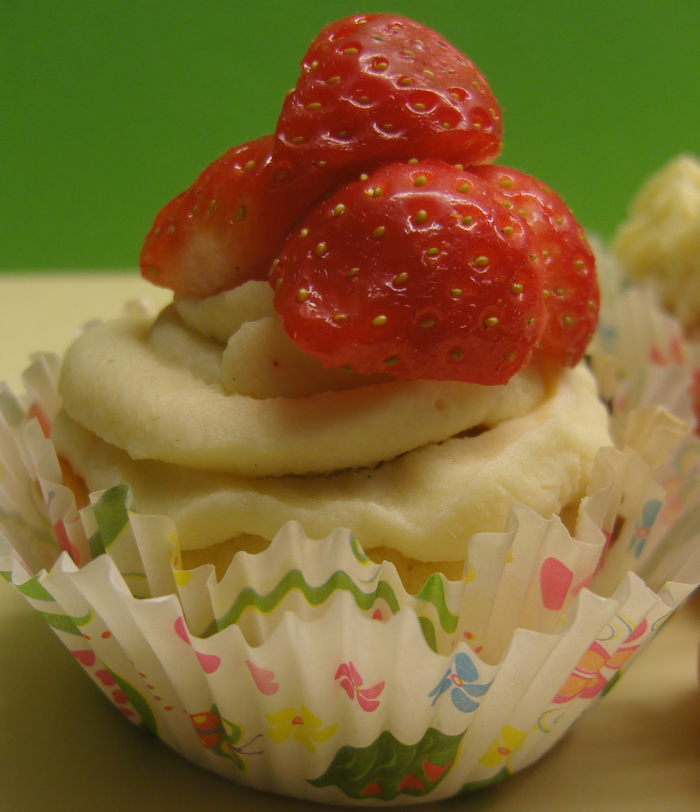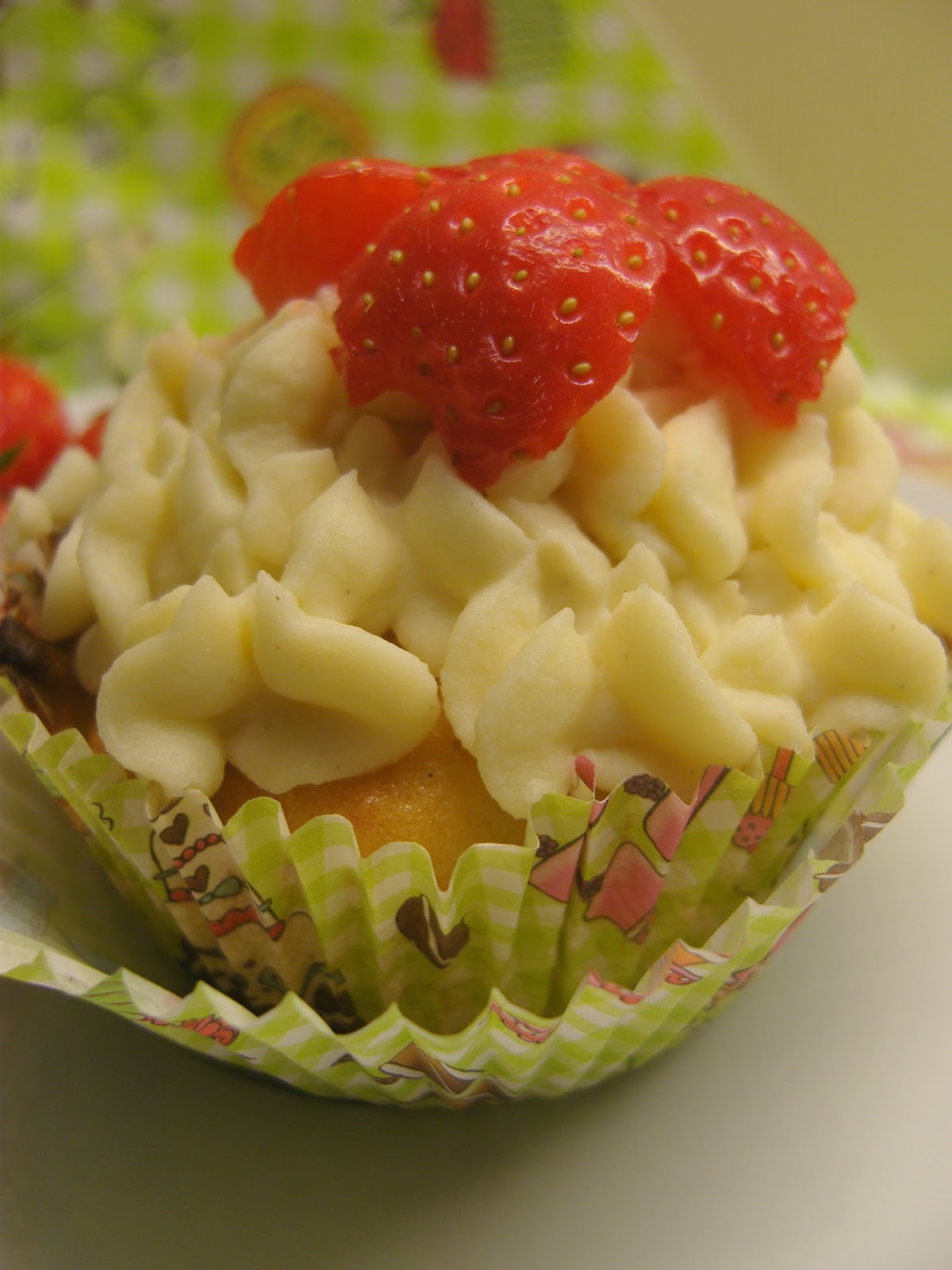 verteilen. Erdbeeren passen sehr gut zusätzlich auf diese Cupcakes.