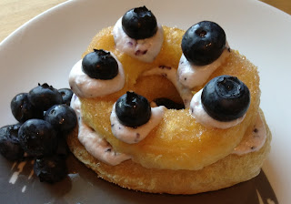 Wer möchte kann noch ein paar Tupfer Creme auf den oberen Cronut geben und