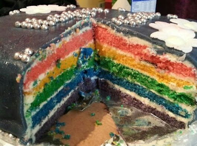 Die Torte ist nicht nur bunt, sondern auch lecker. Außerdem macht sie natürlich auch ziemlich viel her ;-).