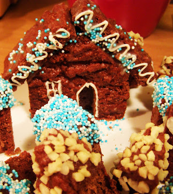 wie zum Beispiel Häuschen, Ecken oder Lebkuchenmännchen. Die Figuren in Zuckerguss dippen bzw.