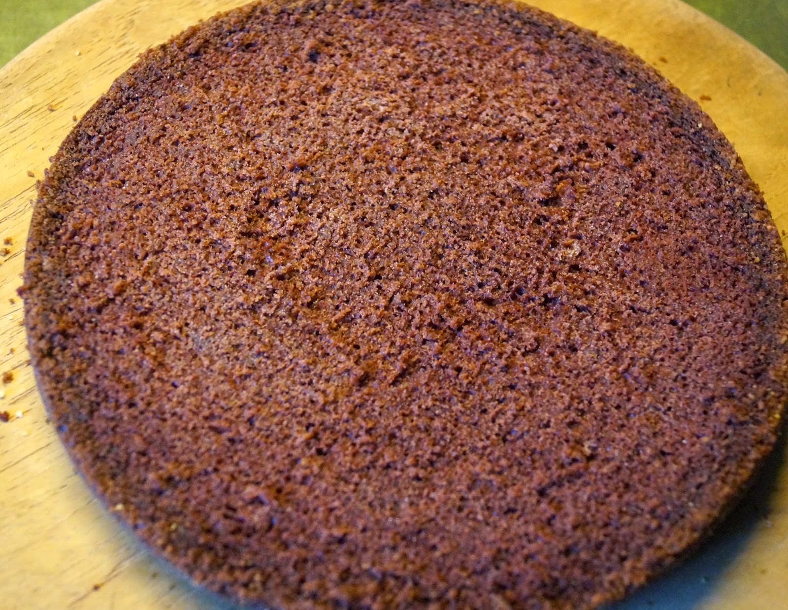 Die kleinere Torte in die Mitte der größeren setzen. Am besten geht dies mit einer Palette/Tortenheber oder großen Messer.