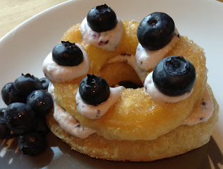 Wer möchte kann noch ein paar Tupfer Creme auf den oberen Cronut geben und